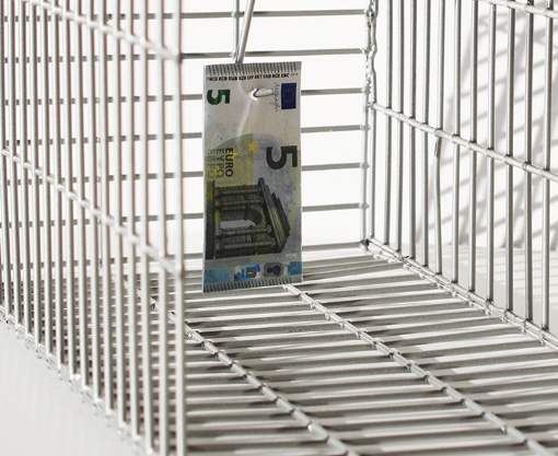 Trappola per topi, copia di banconota da 5€, 30x10cm, 2021